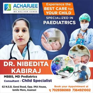 When it comes to our children’s health, parents never compromise. A child needs not only medical expertise but also care, patience, and understanding. In Asansol, Dr. Nibedita Kabiraj (MBBS, MD Pediatrics) stands out as a trusted Child Specialist, offering compassionate and advanced pediatric care at Acharjee Health Clinic & Pharmacy.