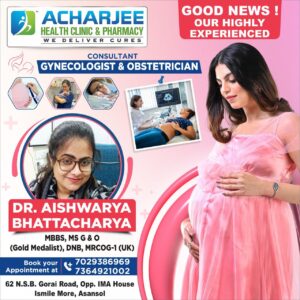 For women of Asansol, Dr. Aishwarya Bhattacharya’s presence at Acharjee Health Clinic means access to modern, compassionate, and expert gynecological care right in the city.